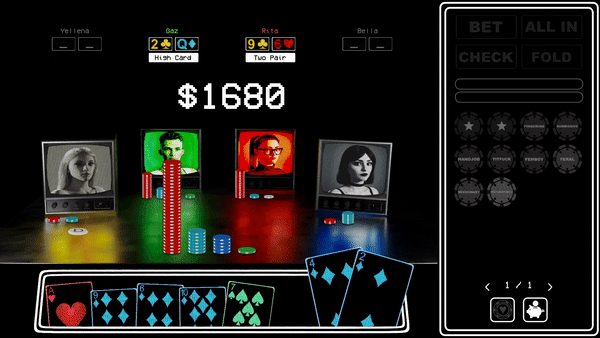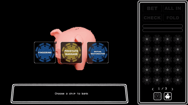 In Porn Poker, you compete against four high-rollers in a viciously sexy game of Texas Hold 'Em Poker to earn porn tags that will later decide what you get to jack - or jill - off to tonight. With hundreds of tags to satisfy even the most battle-hardened gooning machine decerning porn connoisseur and over a million unique title combinations, you're bound to find what your looking for with Porn Poker.